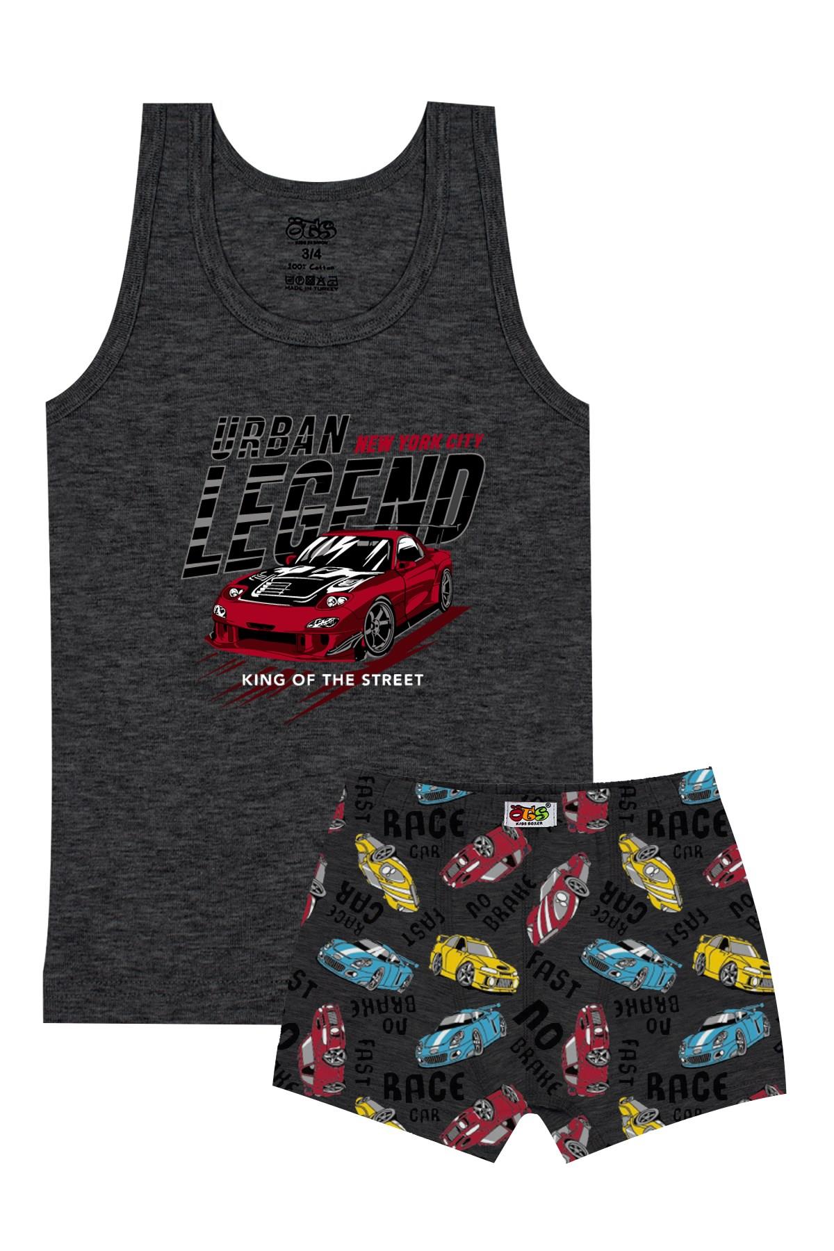 Öts Erkek Çocuk Atlet Boxer Likralı Antrasit Araba (%96 Pamuk - %4 Elastan) (7503-Ant-11-12)