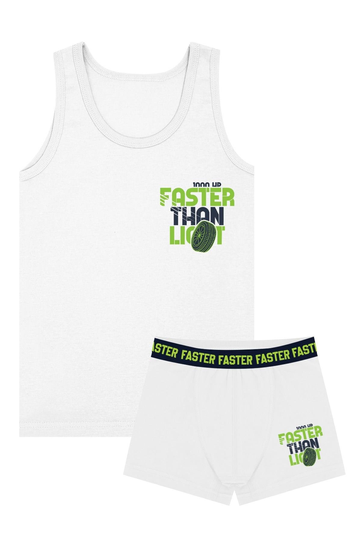 Öts Erkek Çocuk Atlet Boxer Likralı Beyaz Faster (%96 Pamuk - %4 Elastan)