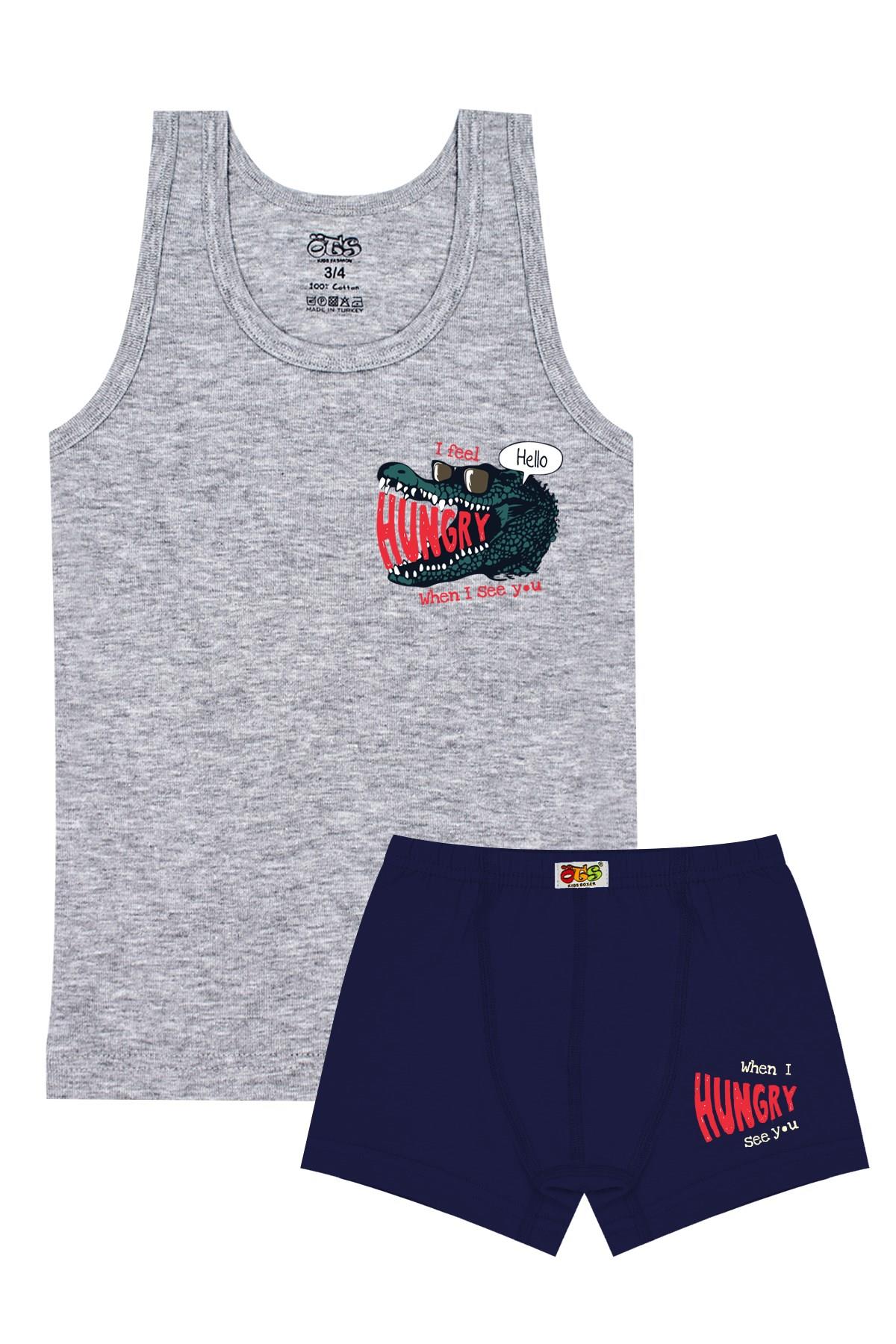 Öts Erkek Çocuk Atlet Boxer Likralı Gri Hungry (%96 Pamuk - %4 Elastan) (7510-GRİ-3-4)