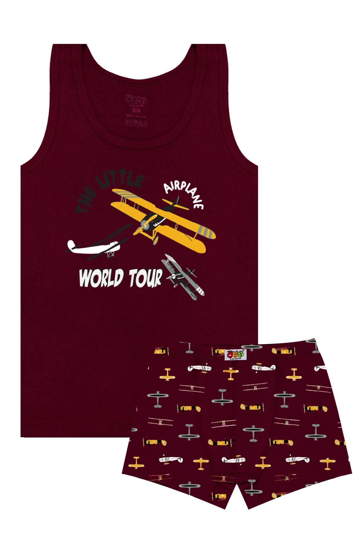 Öts Erkek Çocuk Atlet Boxer Likralı Kırmızı Uçak (%96 Pamuk - %4 Elastan)