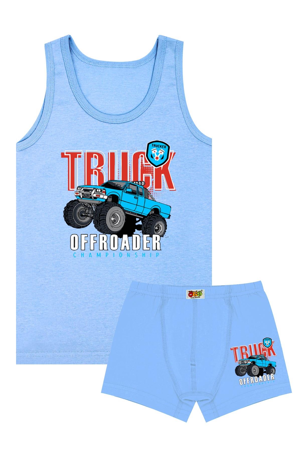 Öts Erkek Çocuk Atlet Boxer Likralı Mavi Monster (%96 Pamuk - %4 Elastan)