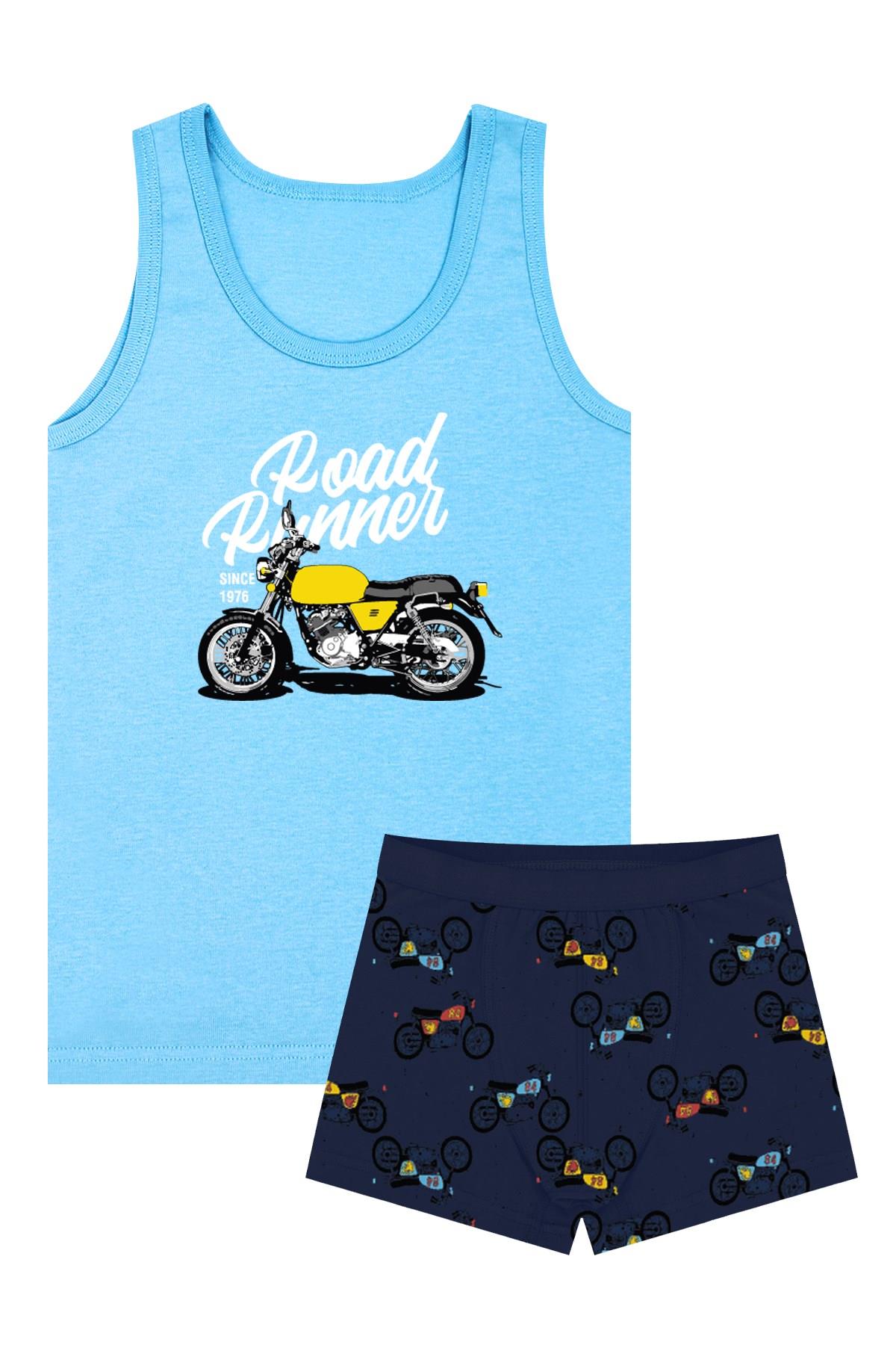 Öts Erkek Çocuk Atlet Boxer Likralı Mavi Motosiklet (%96 Pamuk - %4 Elastan)