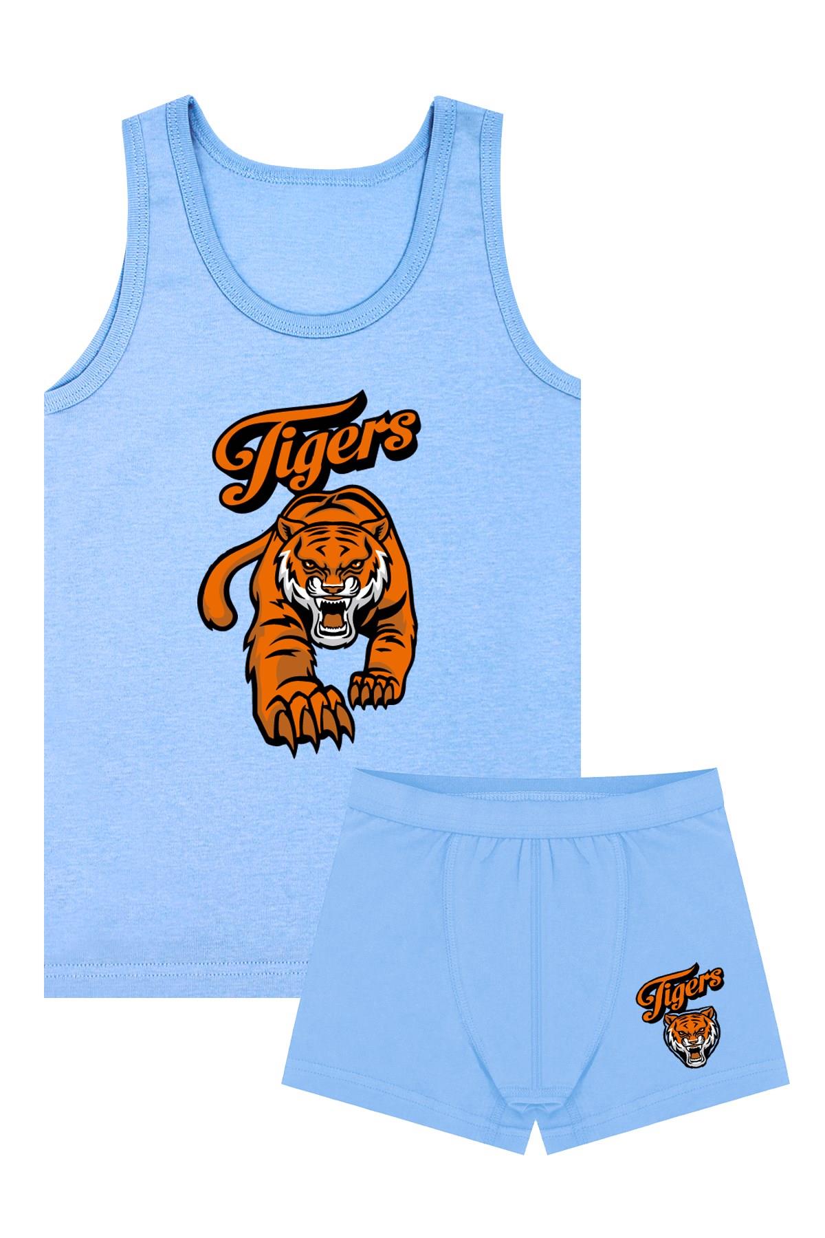 Öts Erkek Çocuk Atlet Boxer Likralı Mavi Tigers (%96 Pamuk - %4 Elastan)