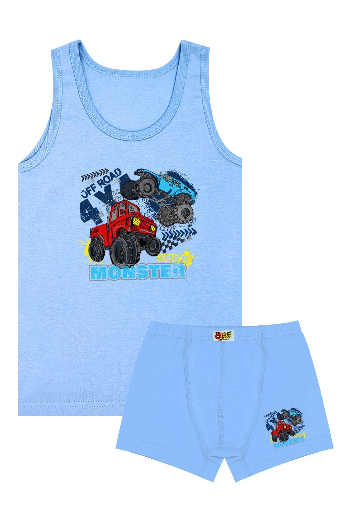 Öts Erkek Çocuk Atlet Boxer Likralı Mavi Traktör (%96 Pamuk - %4 Elastan)