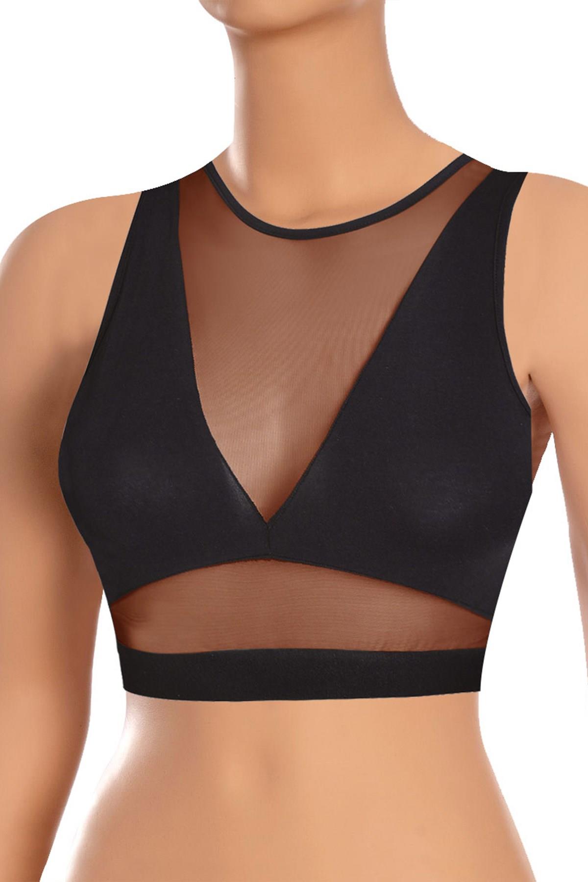Öts Kadın Sütyen Tüllü Pedsiz Büstiyer (%96 Pamuk - %4 Elastan) (6073-Siy-L)