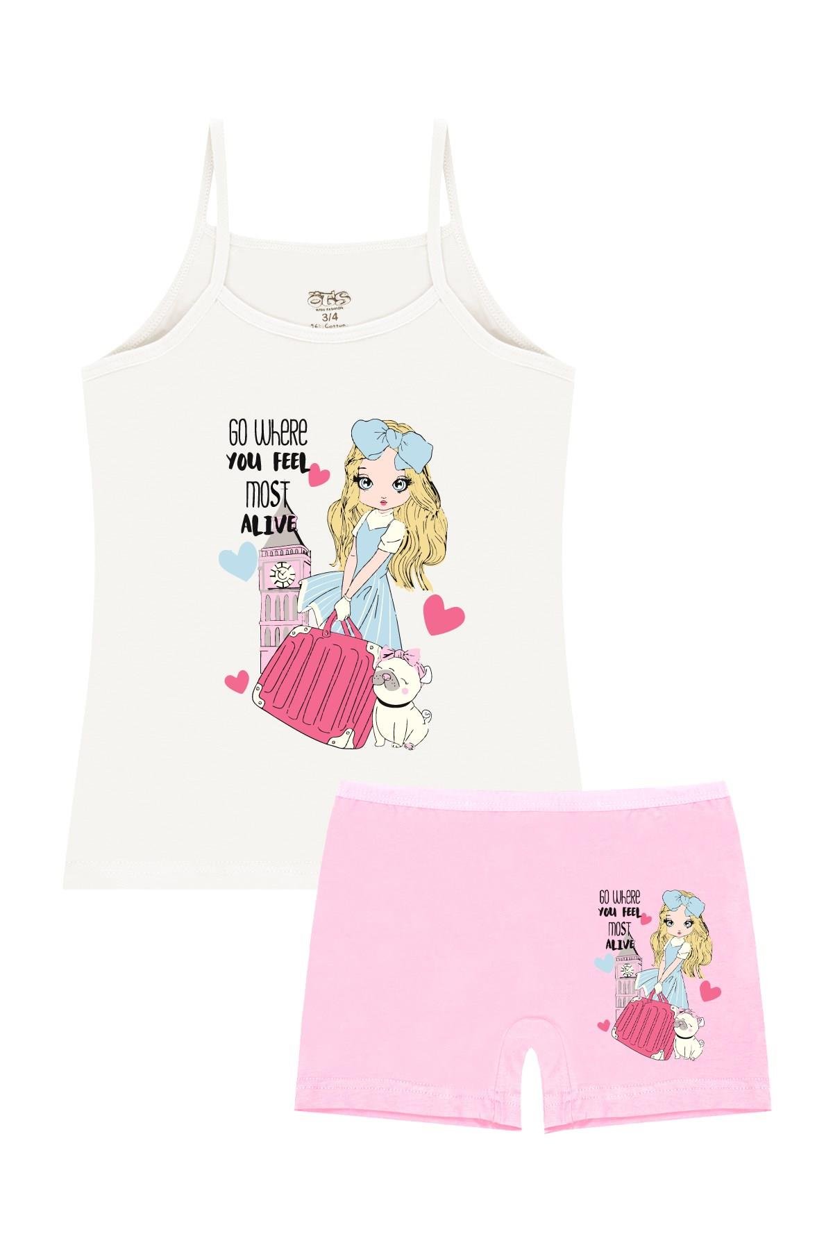 Öts Kız Çocuk Atlet Boxer Likralı Ekru Girl (%96 Pamuk - %4 Elastan)