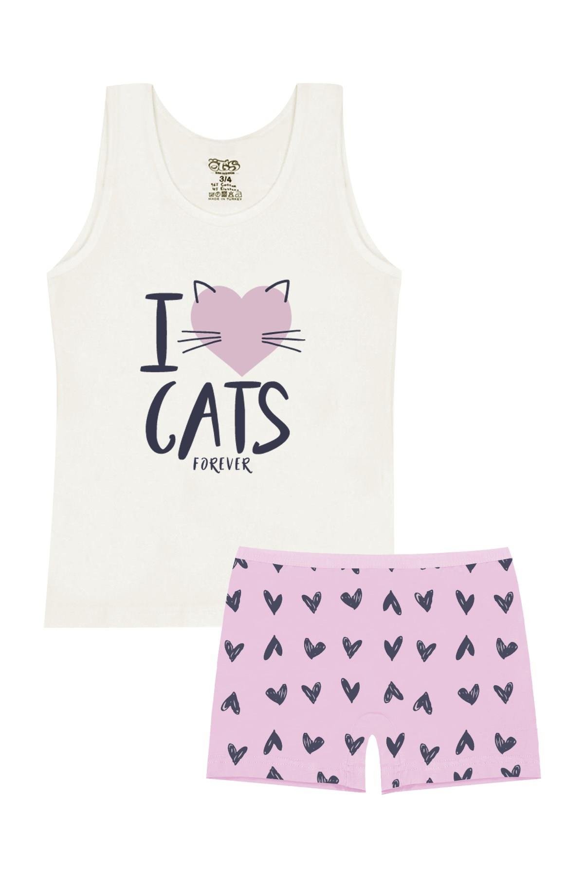 Öts Kız Çocuk Atlet Boxer Likralı Ekru Kedi (%96 Pamuk - %4 Elastan)