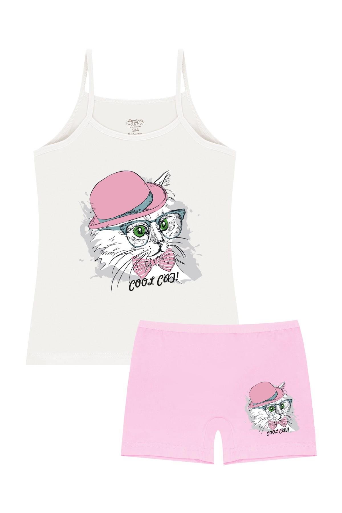 Öts Kız Çocuk Atlet Boxer Likralı Ekru Kedi (%96 Pamuk - %4 Elastan)