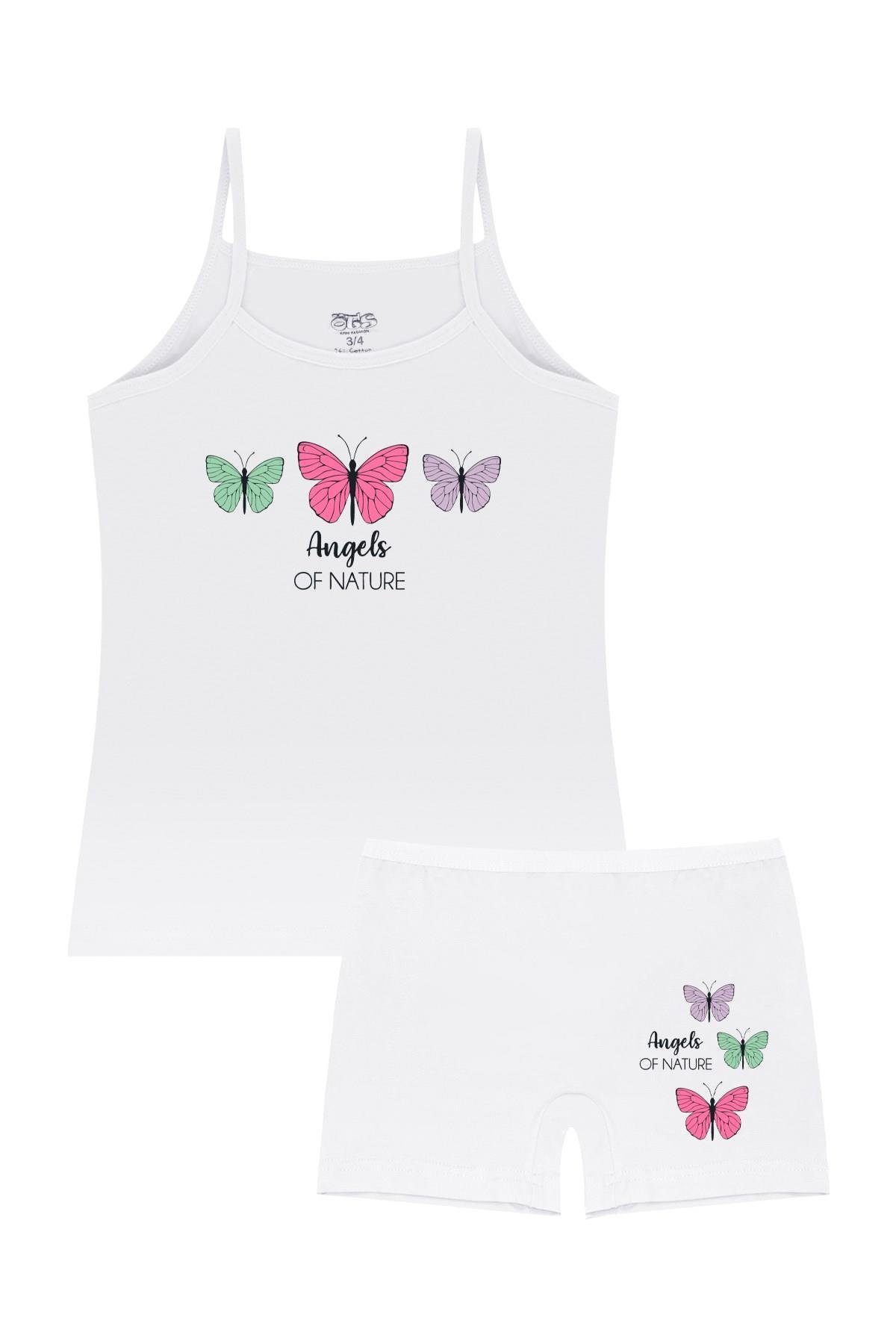 Öts Kız Çocuk Atlet Boxer Likralı Ekru Kelebek (%96 Pamuk - %4 Elastan)