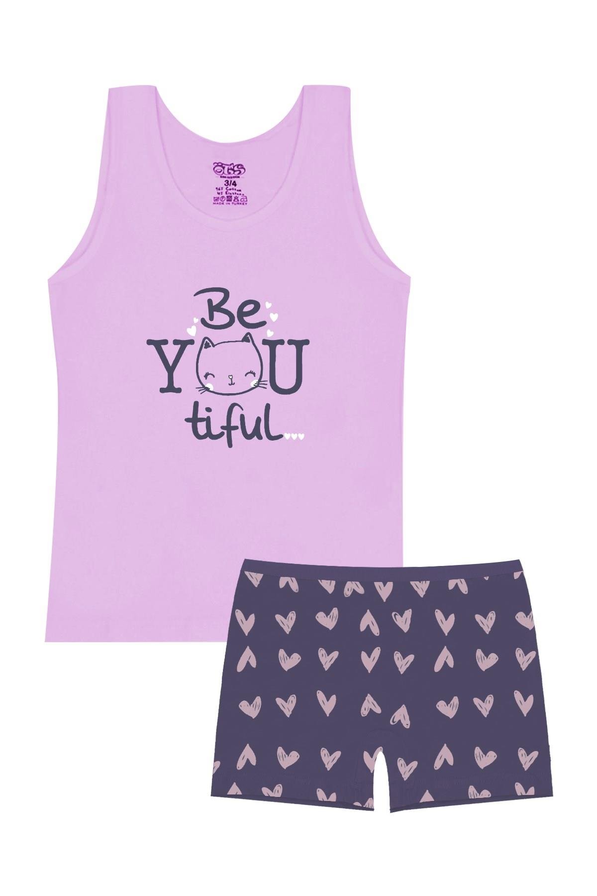 Öts Kız Çocuk Atlet Boxer Likralı Lila Kedi (%96 Pamuk - %4 Elastan) (8530-Lil-11-12)