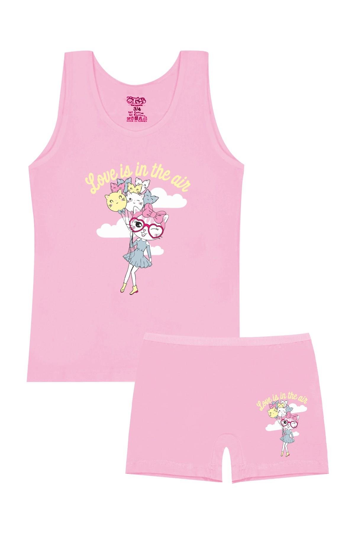 Öts Kız Çocuk Atlet Boxer Likralı Pembe Baskılı (%96 Pamuk - %4 Elastan)