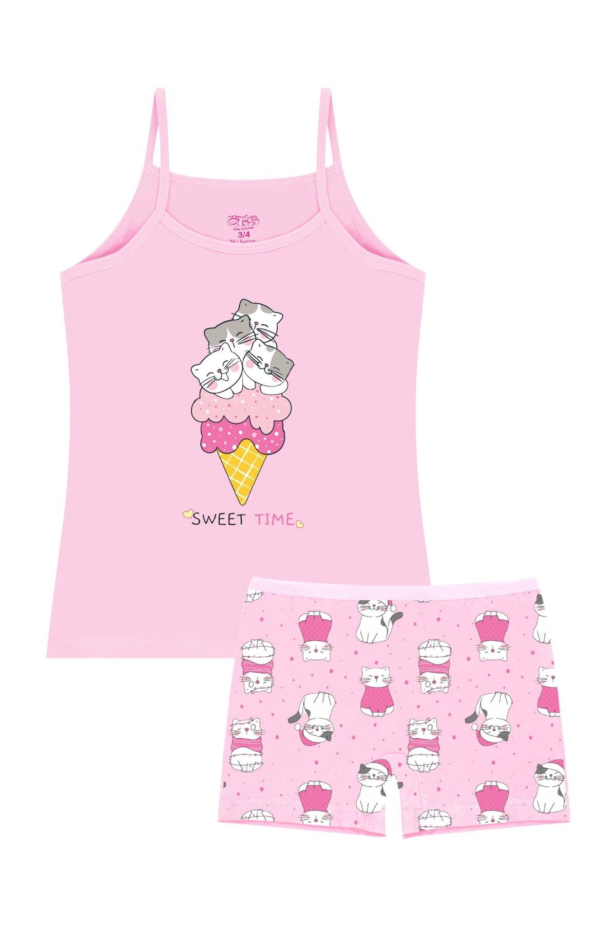 Öts Kız Çocuk Atlet Boxer Likralı Pembe Dondurma (%96 Pamuk - %4 Elastan)