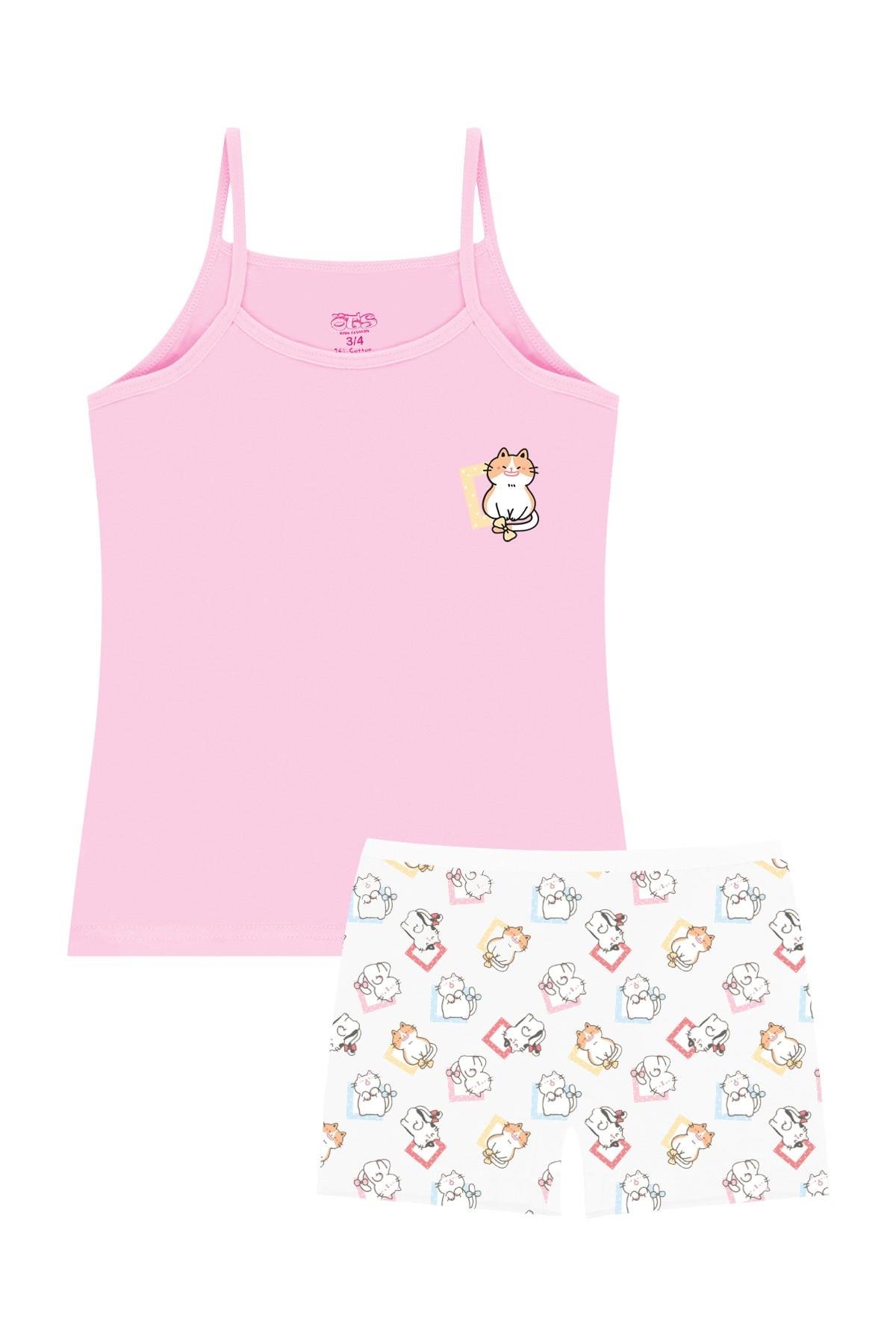 Öts Kız Çocuk Atlet Boxer Likralı Pembe Girl (%96 Pamuk - %4 Elastan) (8534-Pem-11-12)