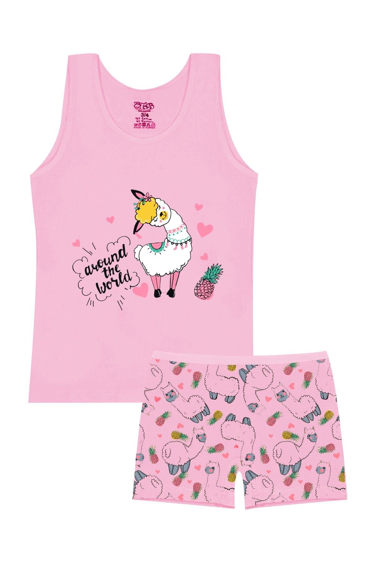 Öts Kız Çocuk Atlet Boxer Likralı Pembe Koyun (%96 Pamuk - %4 Elastan)