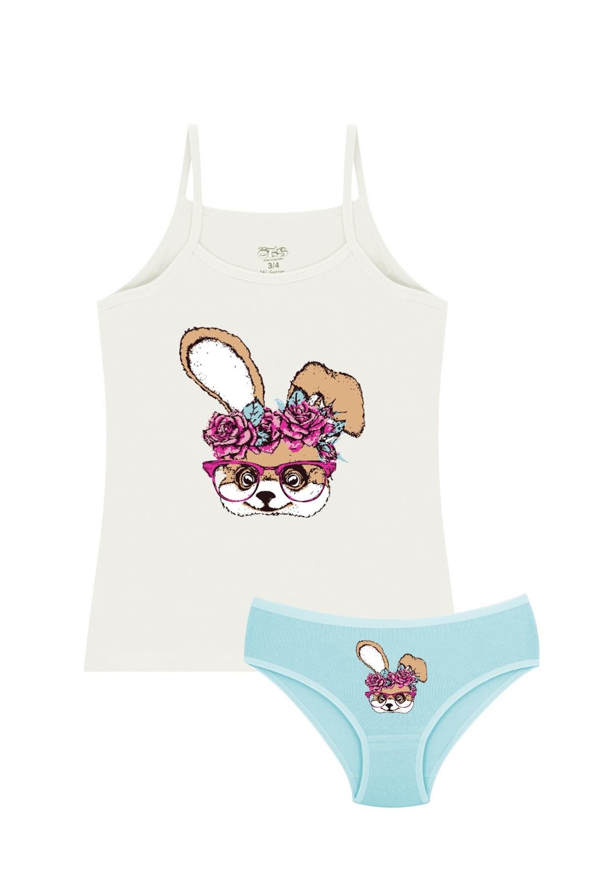 Öts Kız Çocuk Atlet Külot Likralı Ekru Köpek (%96 Pamuk - %4 Elastan)