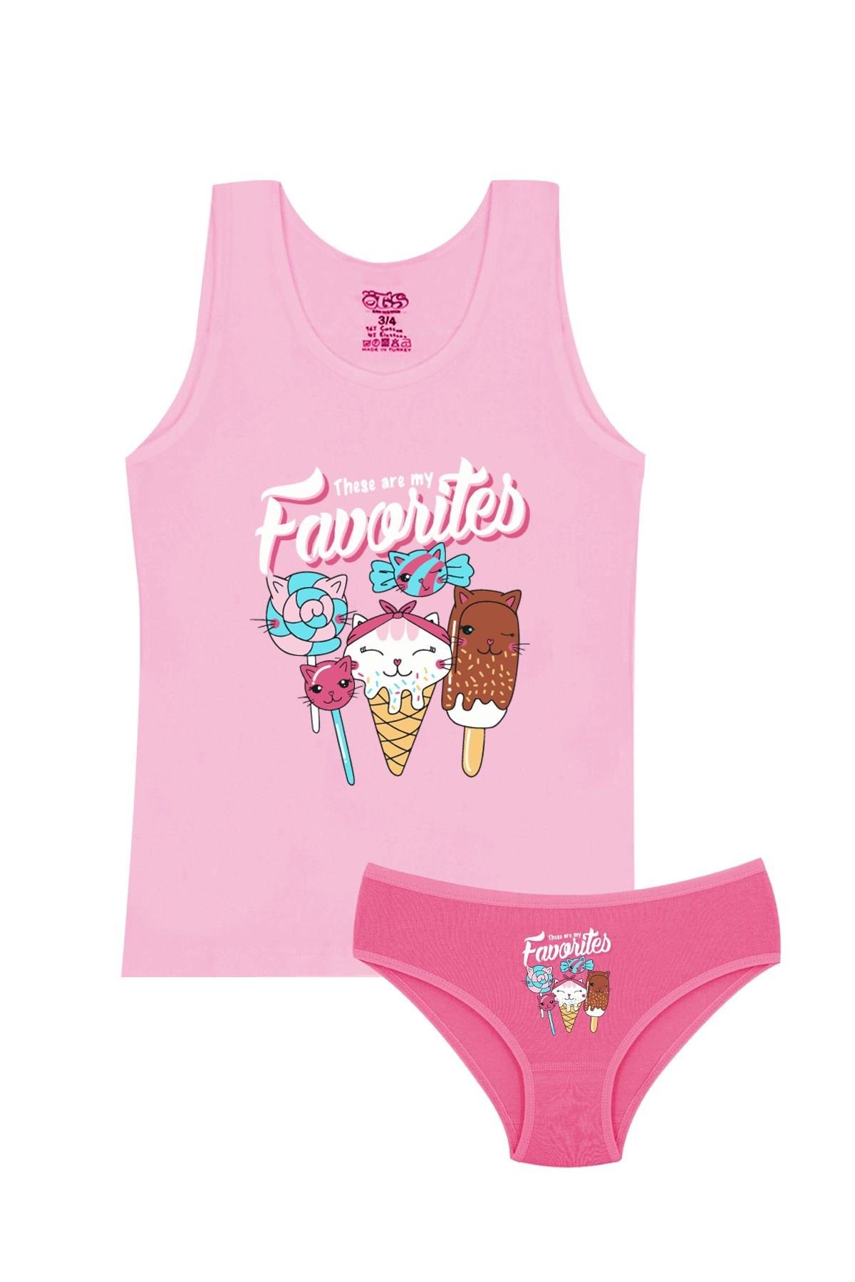 Öts Kız Çocuk Atlet Külot Likralı Pembe Dondurma (%96 Pamuk - %4 Elastan)