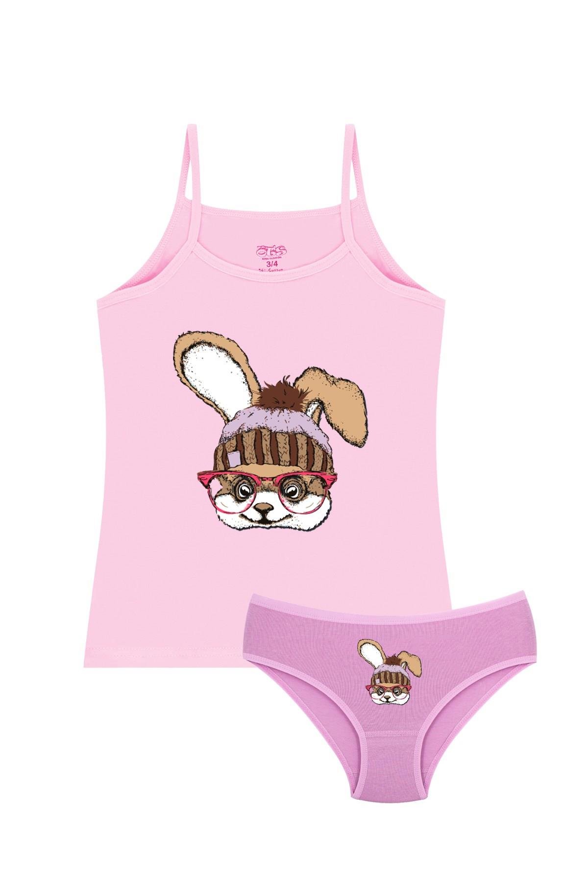 Öts Kız Çocuk Atlet Külot Likralı Pembe Tavşan (%96 Pamuk - %4 Elastan)