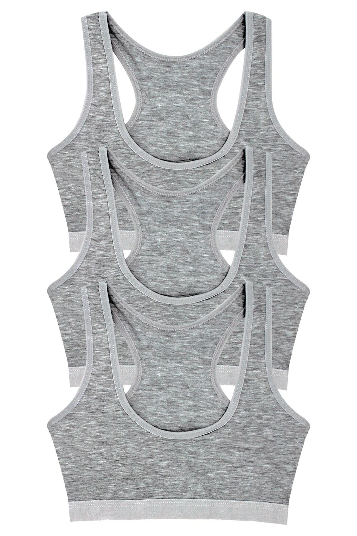 Öts Kız Çocuk Büstiyer 3'lü Pedsiz Sporcu (%96 Pamuk - %4 Elastan) (6104-3-Gri-9-10)