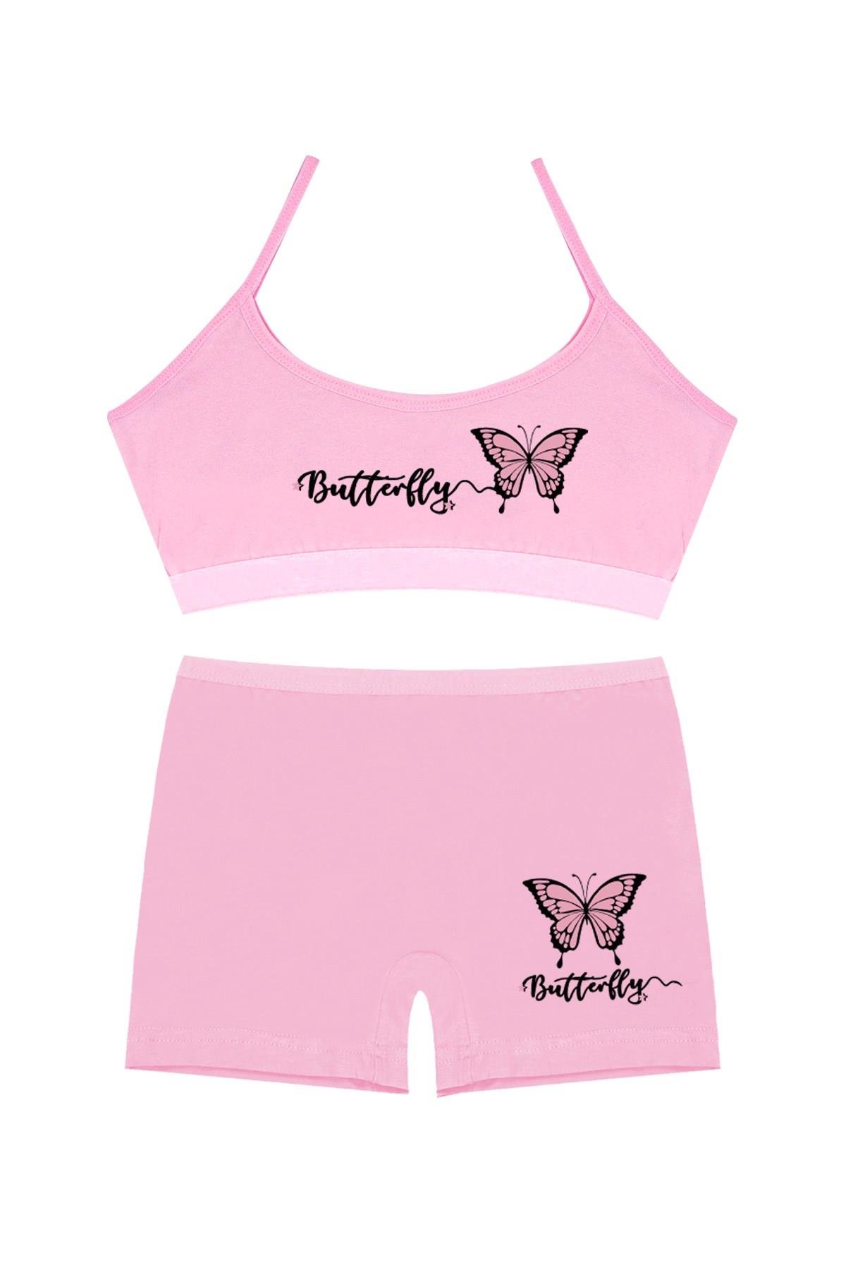 Öts Kız Çocuk Bustiyer Şort Likralı Pembe Kelebek (%96 Pamuk - %4 Elastan)