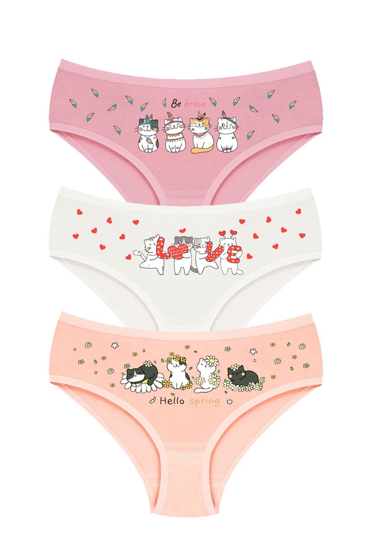 Öts Kız Çocuk Külot 3'lü Baskılı (%96 Pamuk - %4 Elastan) (8260-3-Rnk-1-2)
